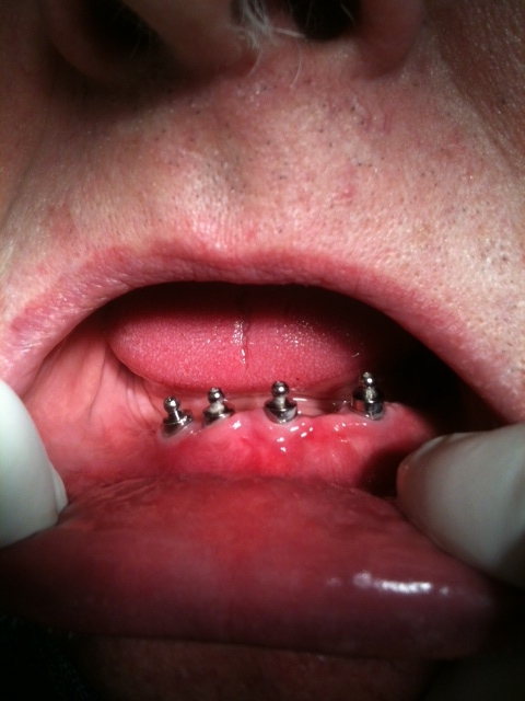 A procedimento terminato si vedranno sporgere dalla mucosa delle piccole sfere metalliche. Queste costituiscono gli attacchi sui quali sarà ancorata la dentiera.