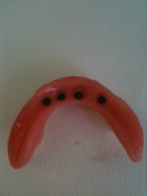 La dentiera, ovviamente deve poter essere fissata alle sfere. A questo scopo vengono inseriti nella base della dentiera, in corrispondenza delle sfere, delle calotte in teflon che saranno il congiungimento tra la dentiera stessa e l’impianto. Questo sistema rende stabile la dentiera mantenendo la possibilità di toglierla, pulirla e reinserirla con facilità.