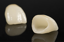 Procedimento: dopo aver preparato i denti corrispondenti e aver preso le impronte, il modello della situazione dentale è scannerizzato al laser e trasmesso ad una fresatrice ad alta tecnologia, ove la struttura del ponte o della corona viene elaborato in un sistema CAD/CAM. Il risultato ottenuto è una struttura precisa, rigida e stabile dimensionalmente